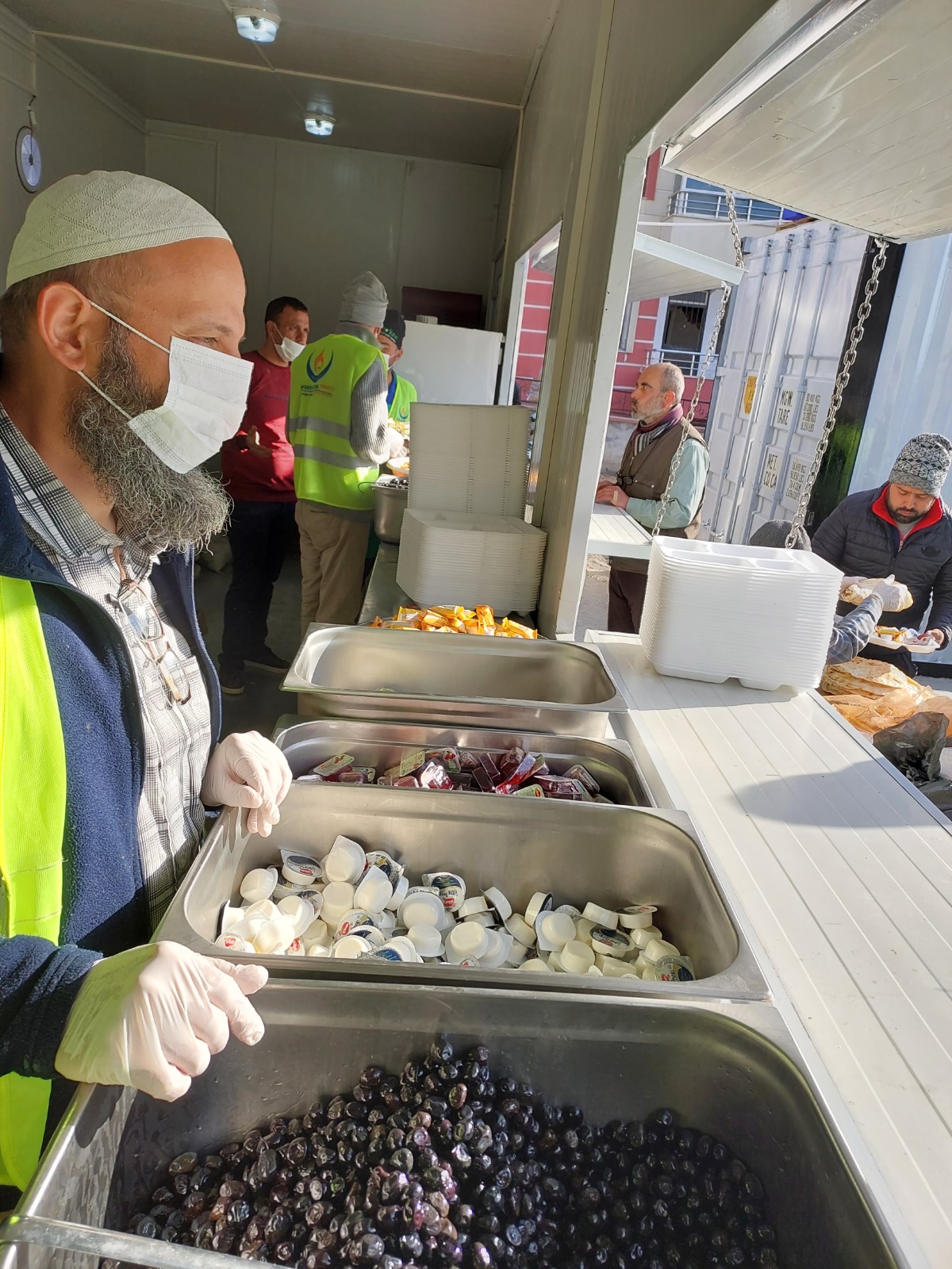 Konteyner kentte bulunan aşevlerimizde kurduğumuz sofralarla