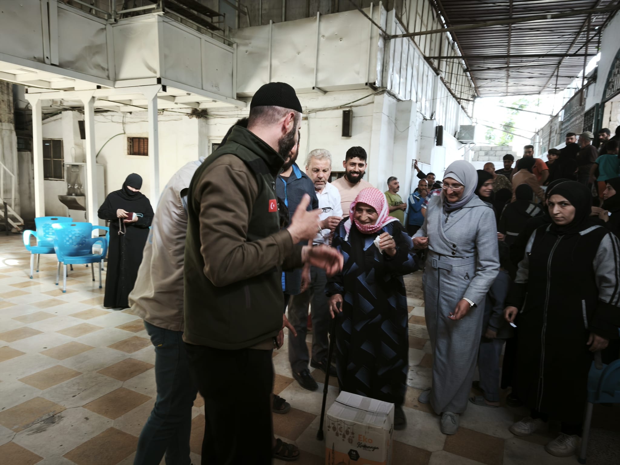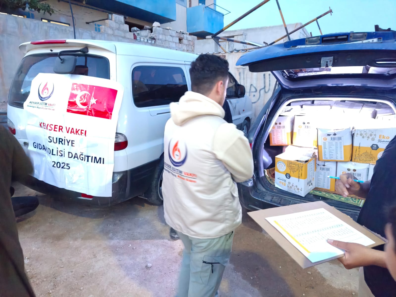 Halep – Azez: Depremzede, yetim ve dul ailelere geniş ölçekli kumanya dağıtımı.